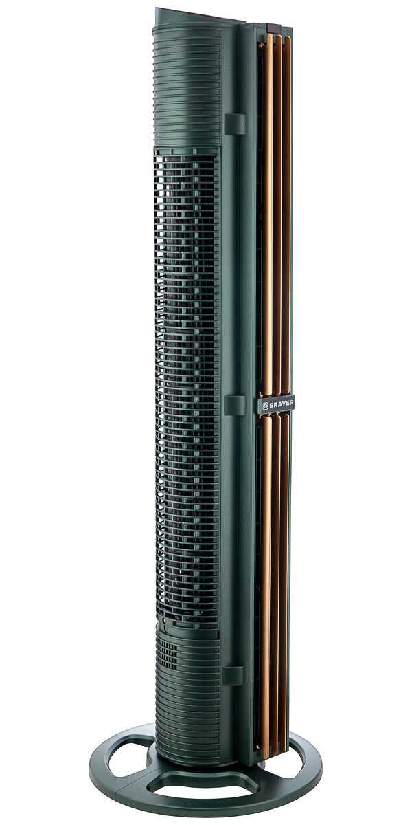 Конструкция с узким вертикальным корпусом (без вращающейся "юбки") и складными заслонками делает модель компактной. Высота регулируется, что упрощает размещение в кладовой или на балконе – это отмечают владельцы малогабаритных квартир. -