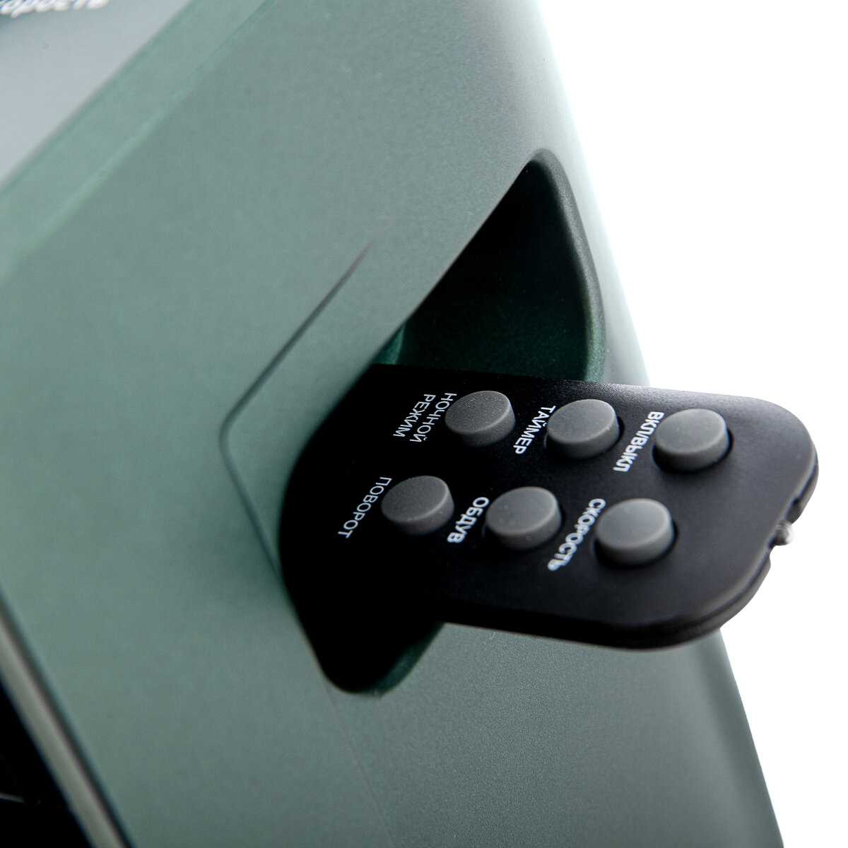 Пульт позволяет переключать 6 скоростей и три режима ("Нормальный", "Ночь", "Природа"), но в комплекте отсутствуют батарейки. Разъем для хранения пульта на корпусе признан неэргономичным – устройство фиксируется ненадежно. Режим "Природа" имитирует естественный бриз, хотя некоторые пользователи отмечают его малую эффективность. -