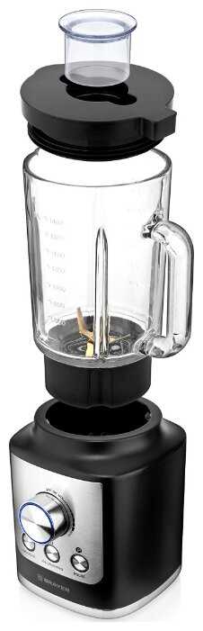 - Толстостенный стакан (1.8 л) из закаленного стекла устойчив к царапинам, нагреву и не впитывает запахи, в отличие от пластиковых аналогов.
