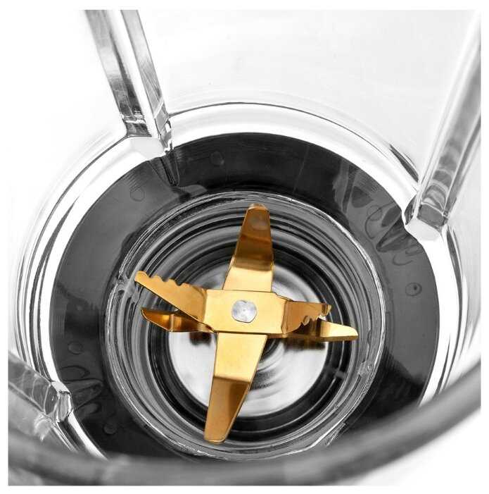 - Толстостенный стакан (1.8 л) из закаленного стекла устойчив к царапинам, нагреву и не впитывает запахи, в отличие от пластиковых аналогов.