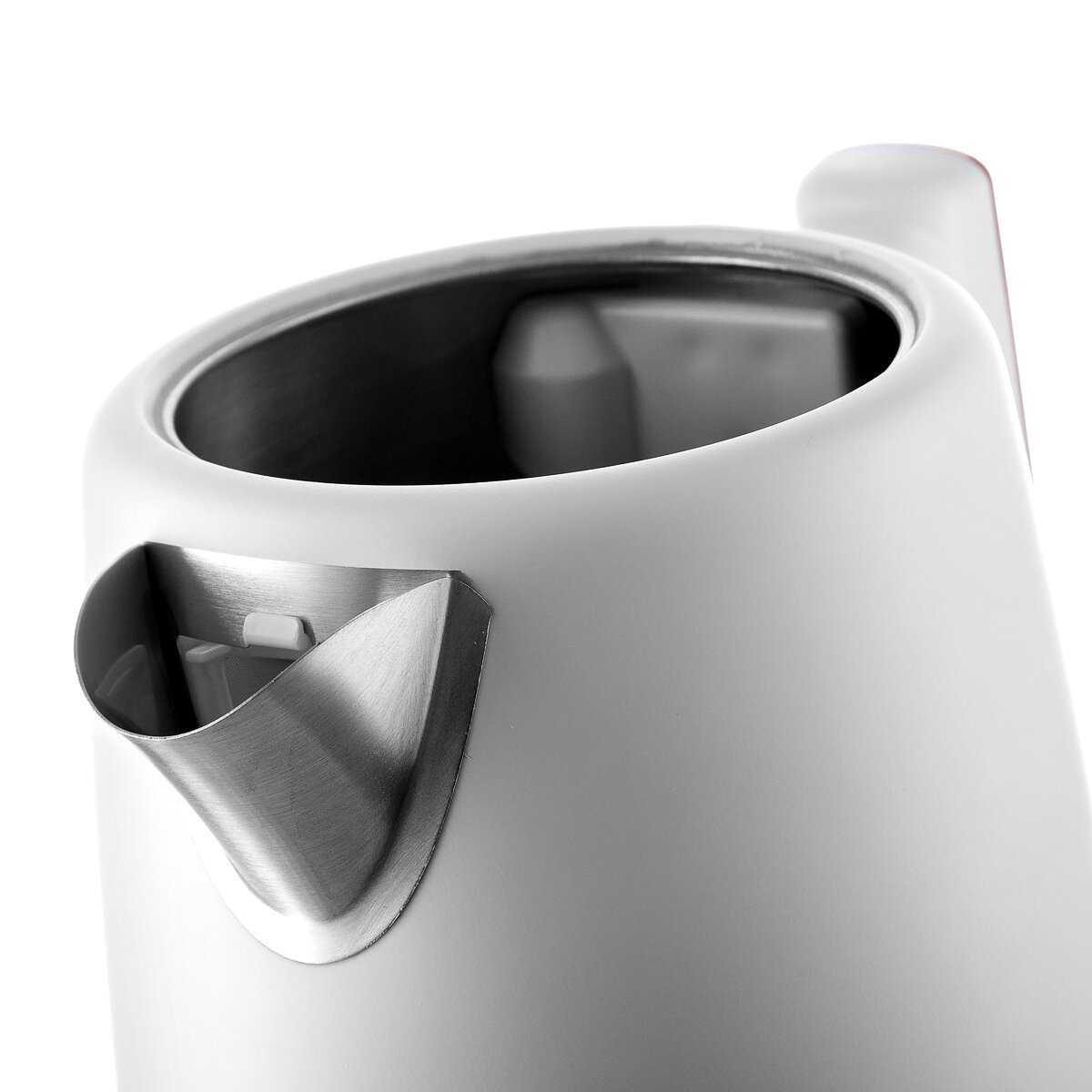 Конструкция носика обеспечивает аккуратную подачу без брызг даже при заполнении узких кружек. Фильтр-сетка предотвращает попадание крупной накипи, но требует регулярной очистки. Расположение носика под углом 45° к ручке признано эргономичным. -