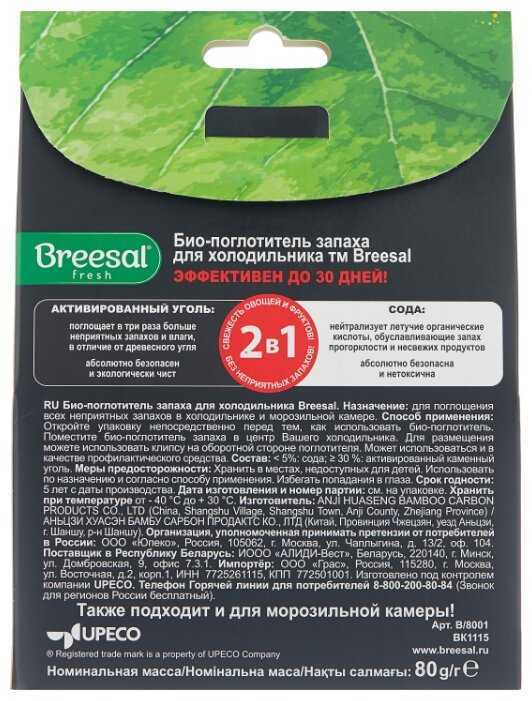 78 отзывов пользователей o Breesal био-поглотитель запаха для холодильника, 80 гр
