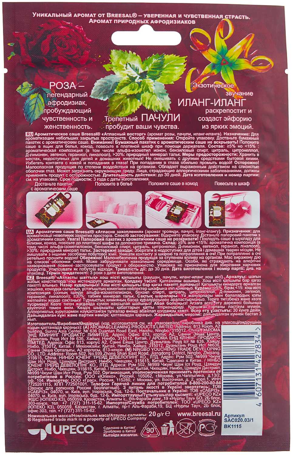 Характеристи Breesal саше Пробуждение страсти, 20 гр