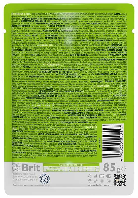 Минеральные вещества : | на 1 кг: цинк 10 мг, марганец 2 мг, йод 0, 7 мг, медь 0, 2 мг, таурин 450 мг |