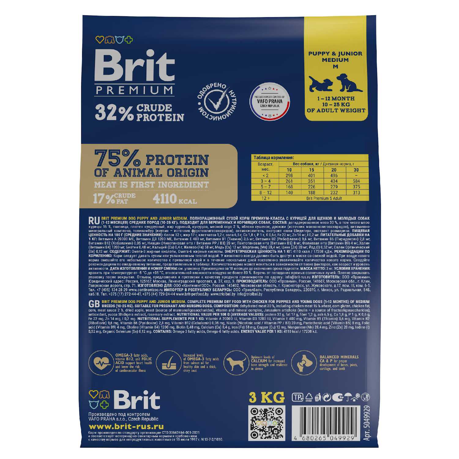 Характеристи Brit Premium Puppy and Junior Medium (с курицей)