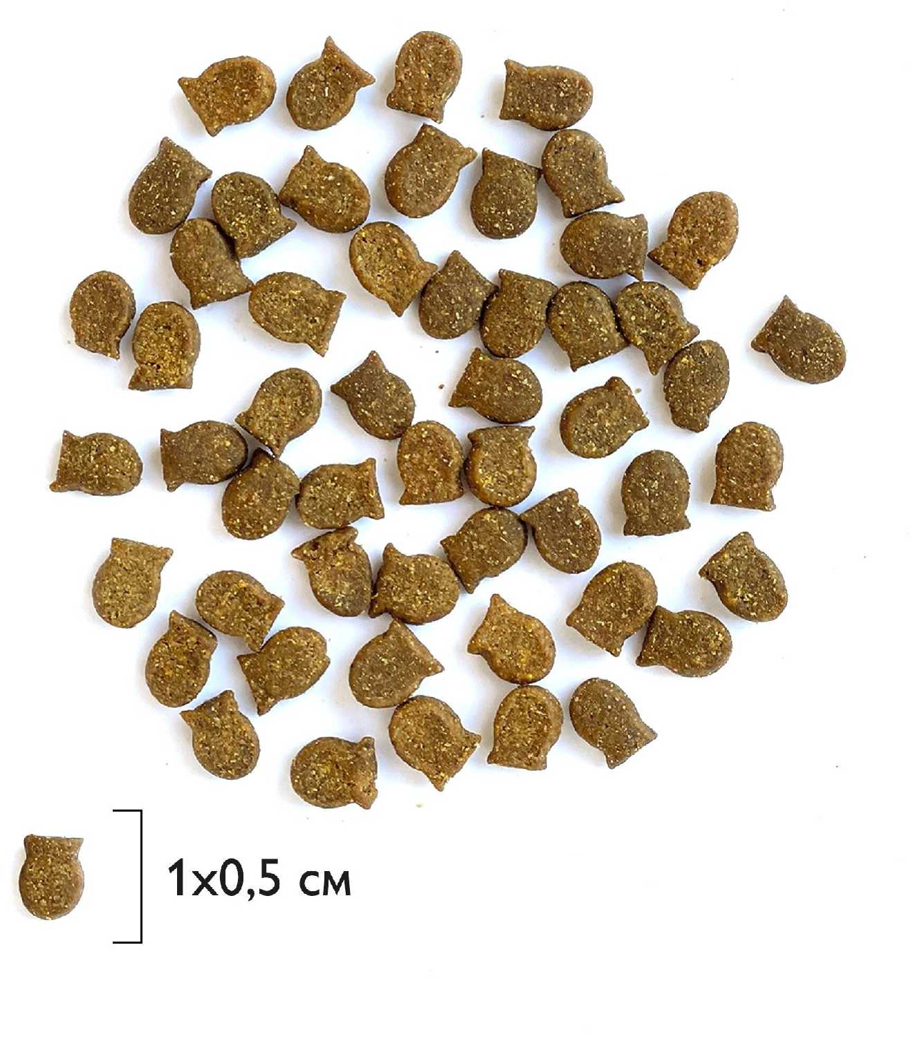 - Мелкая фракция (3–5 мм) подходит пожилым кошкам и породам с небольшими челюстями, облегчая разжёвывание.