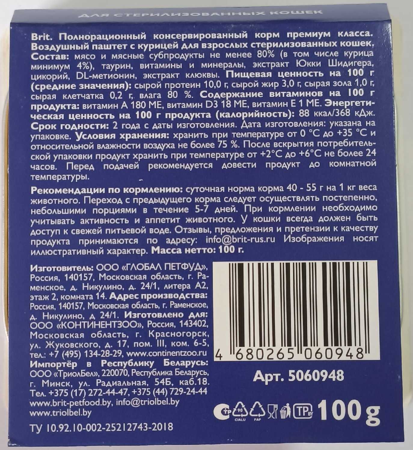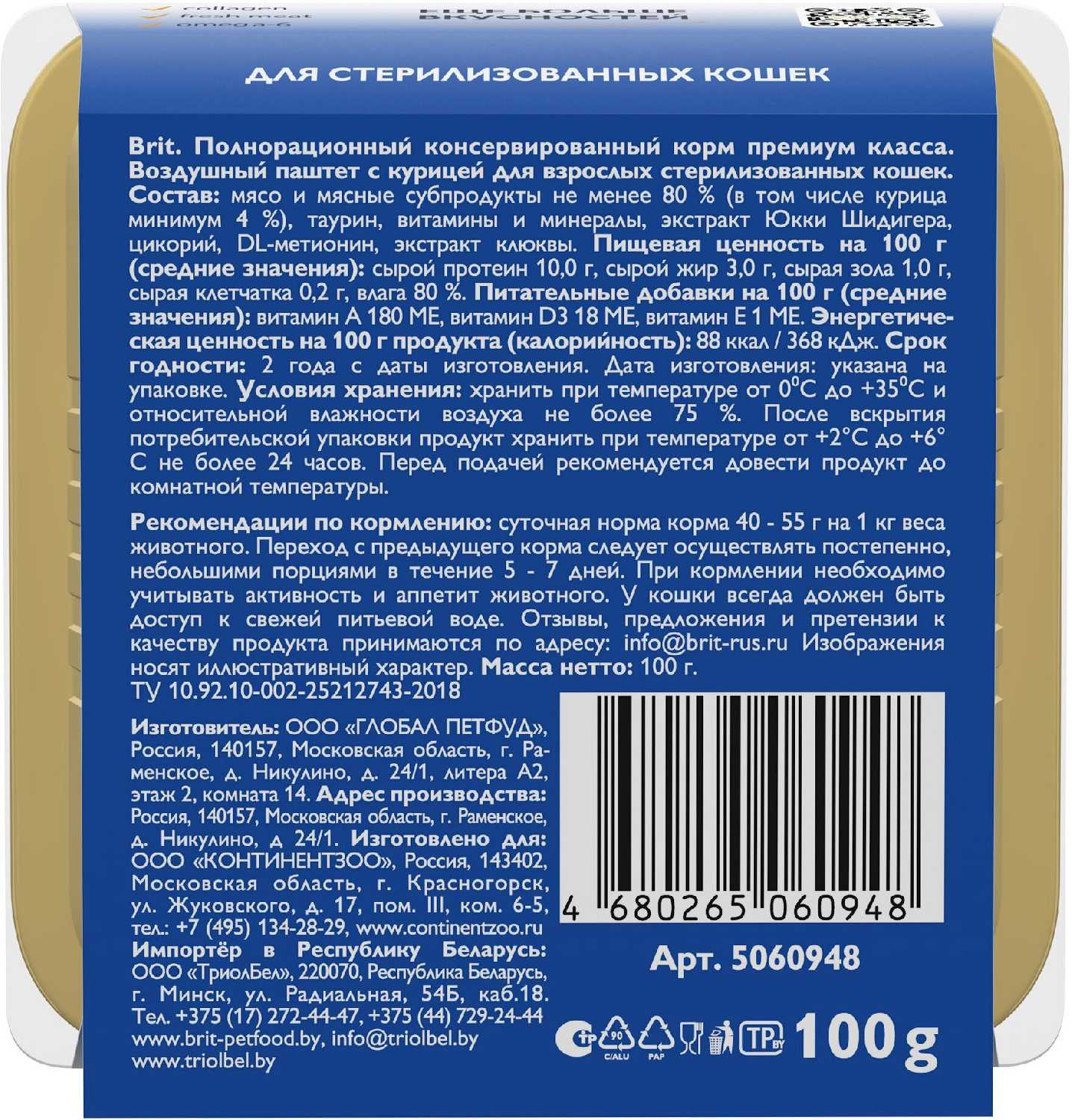 Отзывы о Корм для кошек Brit Воздушный с курицей (паштет)