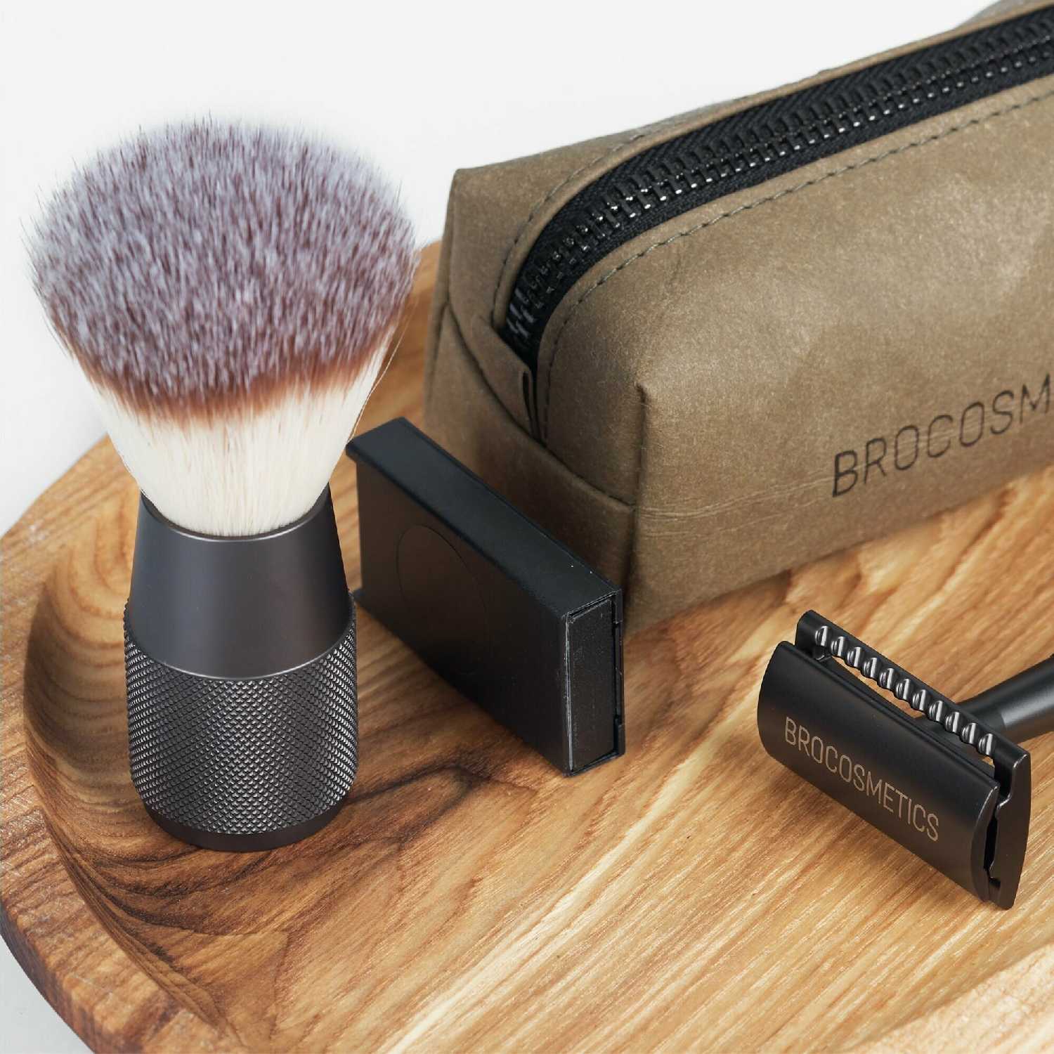 очень приятный набор, помазок мягкий, бритва тяжёлая и с перфорацией на ручке. пенал для хранения и транспортировки красивый и компактный