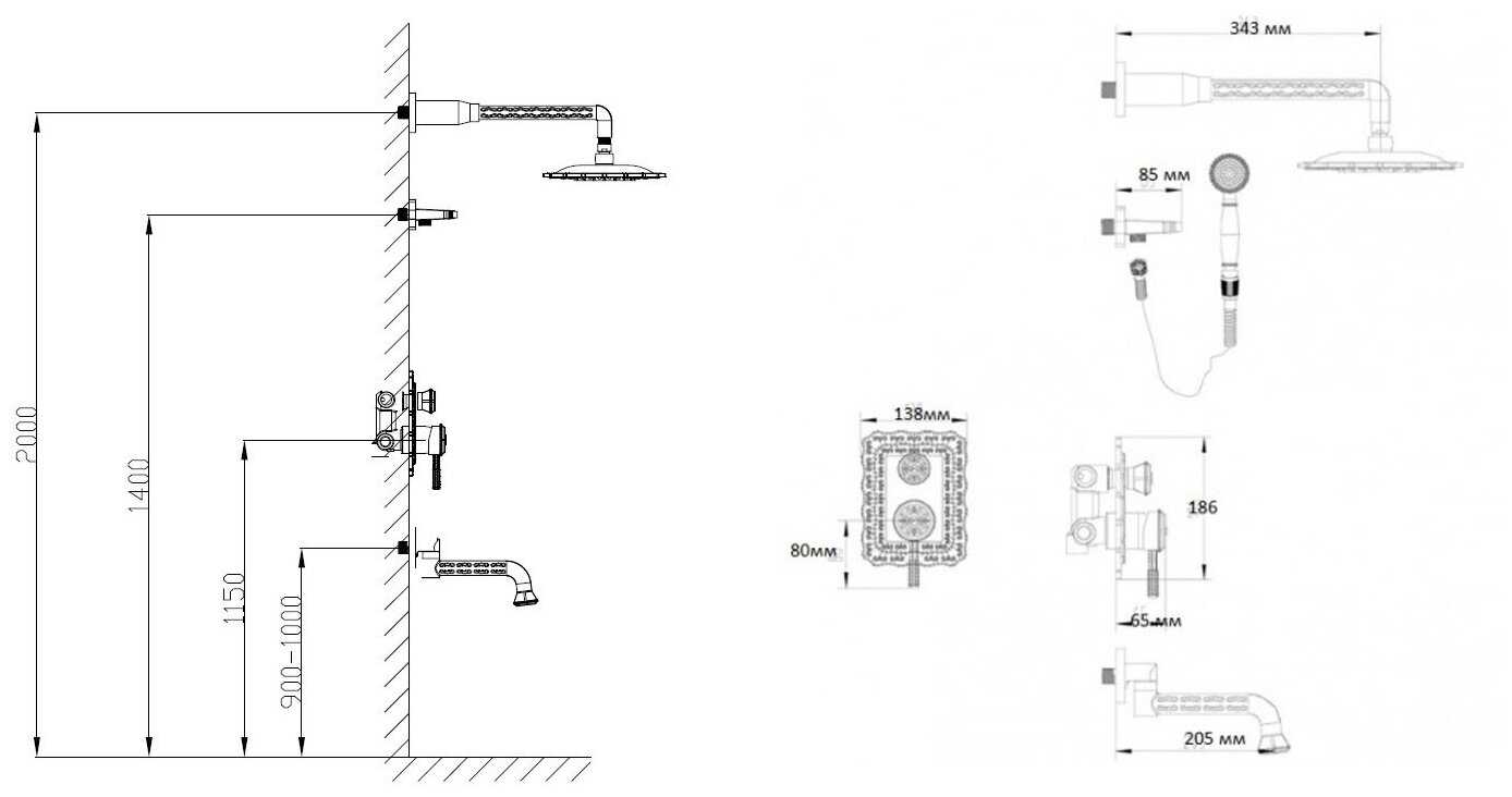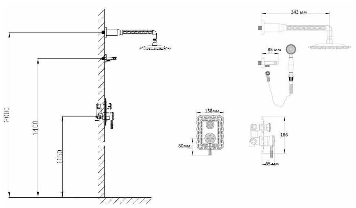 | Особенности : | держатель душевой лейки, защита от скручивания, регулируемый верхний душ |