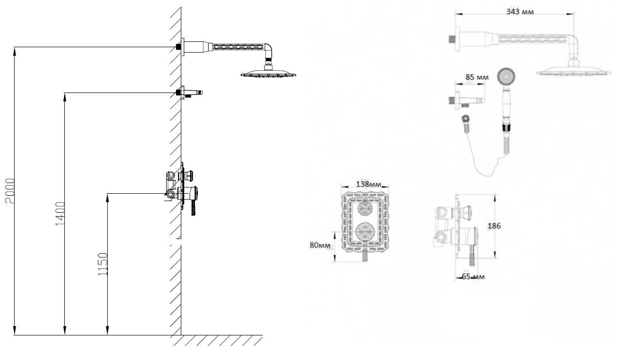| Особенности : | держатель душевой лейки, защита от скручивания, регулируемый верхний душ |
