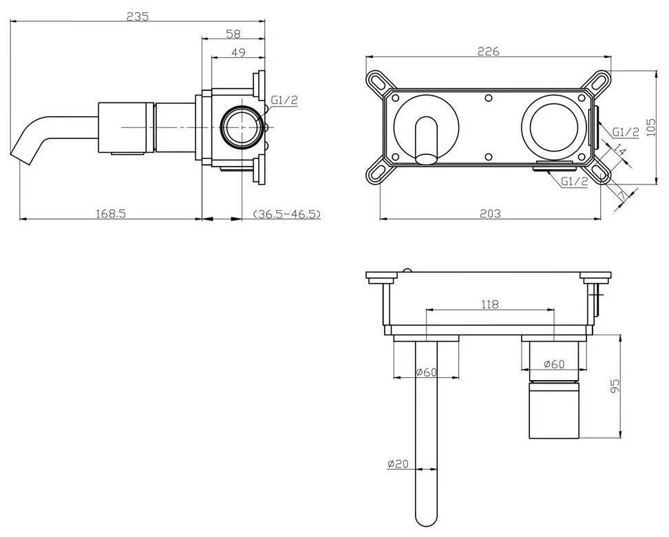 Bronze de Luxe 24686CM Смеситель настенный дл?
