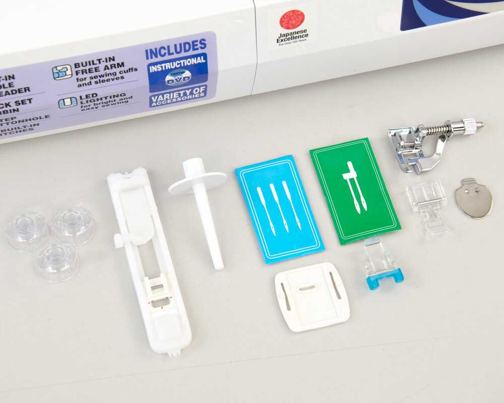 - + Швейная машина целая на вид, все дополнительные аксессуары на месте, коробка целая