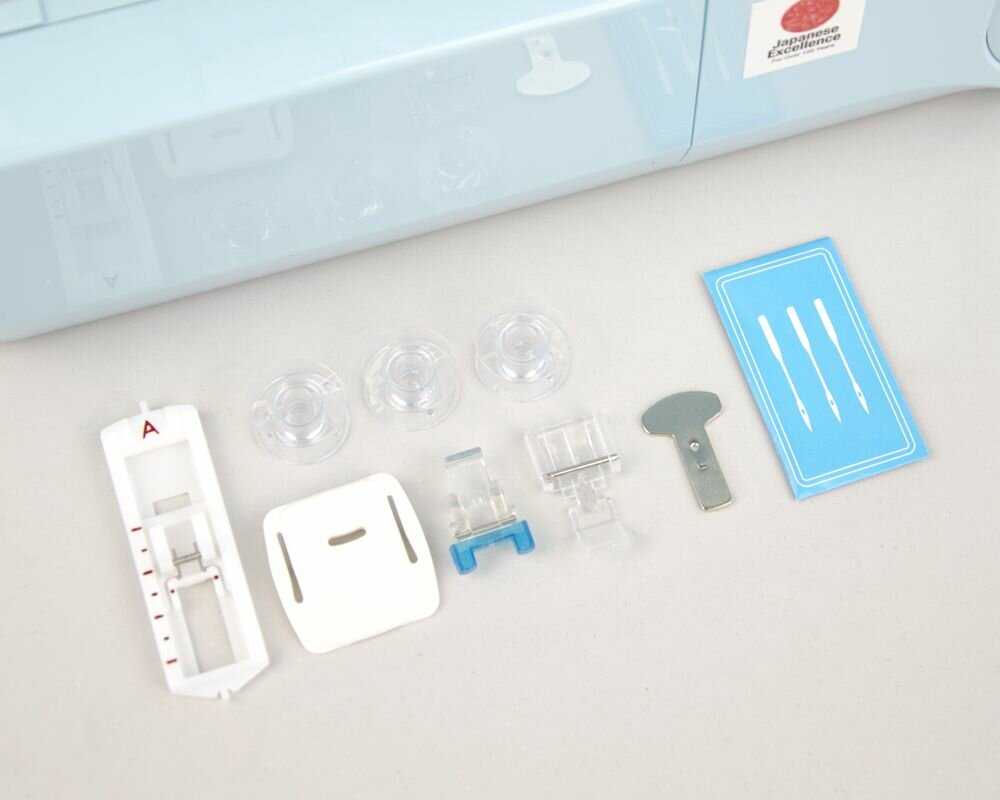 Базовая комплектация включает несколько лапок (для вшивания молнии, обработки петель), запасные иглы, шпульки, штопальную пластину и отвертку. Большинству пользователей этого набора хватает для повседневных задач, но для расширенных возможностей (свободная стежка, квилтинг) рекомендуется докупать дополнительные лапки, которые совместимы с универсальными наборами. Некоторые отмечают недостаточное количество шпулек в комплекте. -