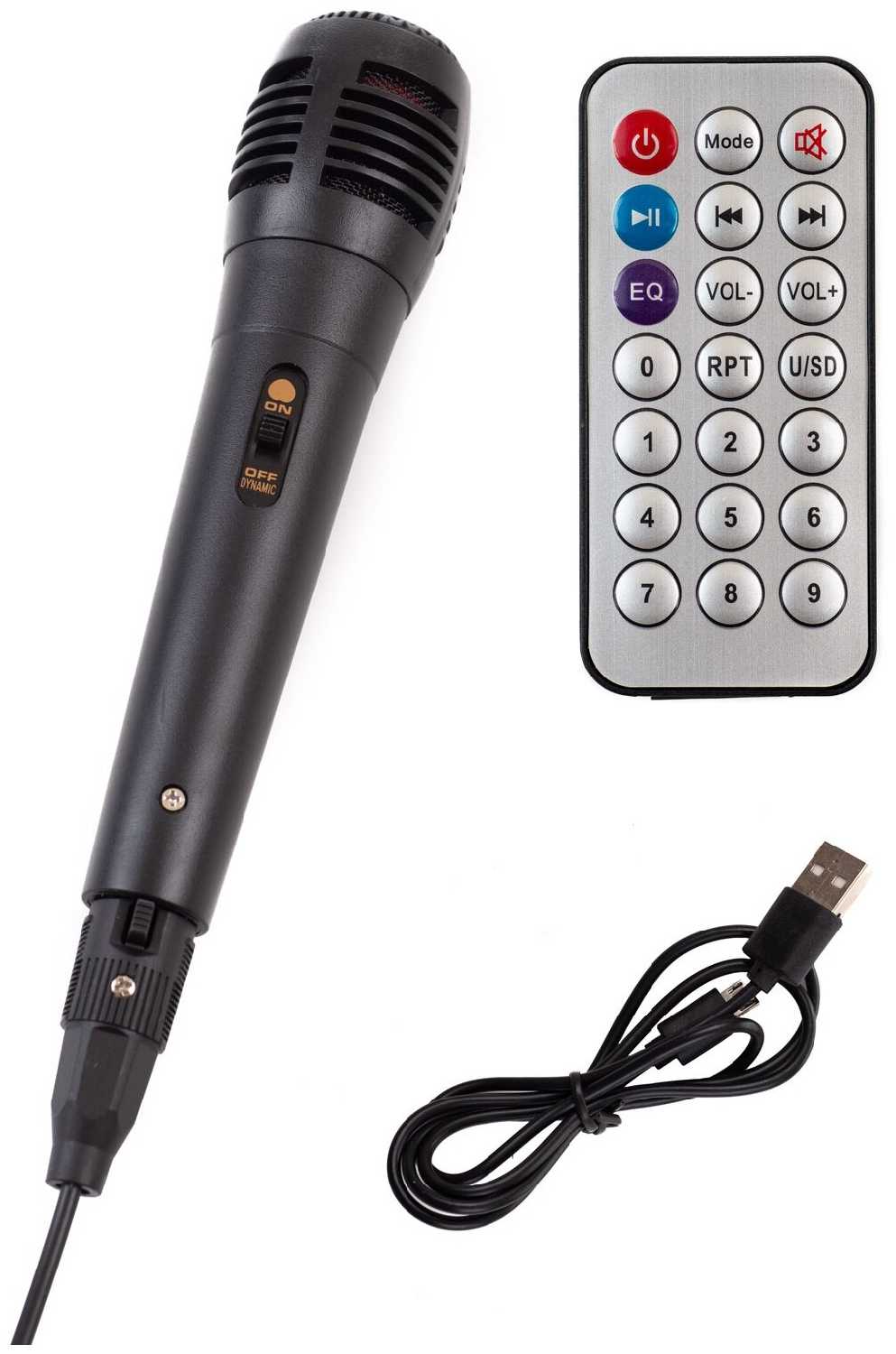 - + лёгкая,удобная,две ручки,эквалайзер,цветомузыка,микрофон,пульт д/у,кабель для зарядки и микрофона