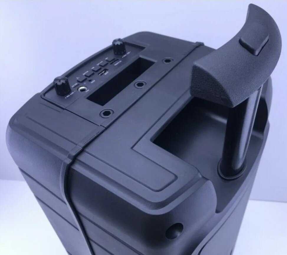 - Телескопическая ручка и встроенные колесики позволяют перемещать колонку без поднятия, снижая нагрузку при переносе.