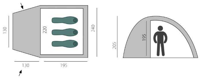 - - Размеры внутренней палатки меньше, чем заявлено на картинке. Плохо прошитая по краям юбка, до верхнего клапана вентиляции со стороны спальни не дотянутся.
