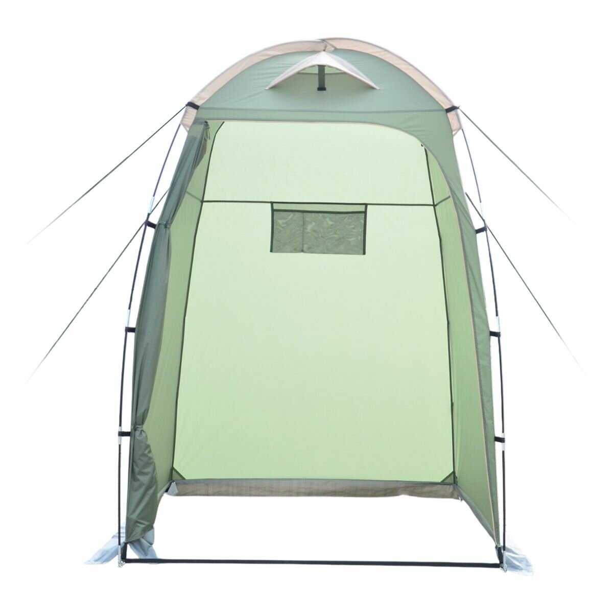 - - Чуть больше бы вентиляционных окошек, а так только одно маленькое вверху. Неустойчивая если не крепить внизу колышками, ну и при ветре-оттяжками