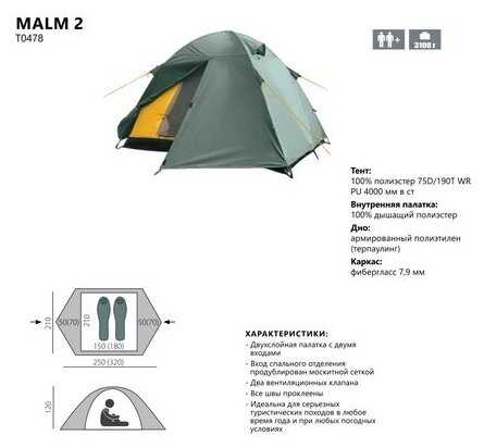 - + Достоинства - цена. Палатка была куплена за 5090 руб. Что вполне укладывается понятие бюджетной палатки. Не самая дешевая, но и не слишком дорогая. Вес, внешний вид и размеры соответствуют описанию.
