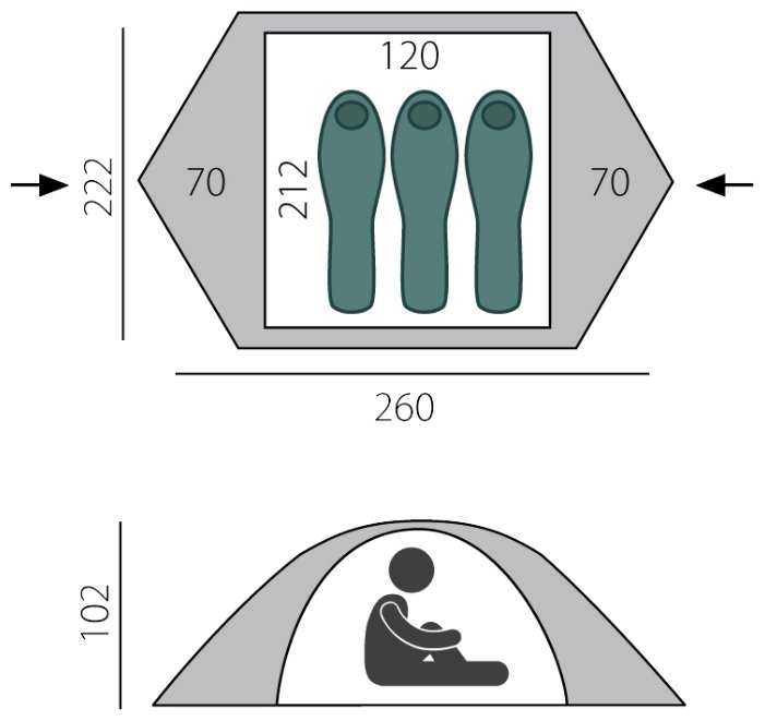Для двоих маловата, для одного в самый раз. Два небольших тамбура позволяют поставить обувь и всякие мелочи. Рюкзак кладу сбоку или в ноги, мне не мешает. Очень простая конструкция. Вентиляция...