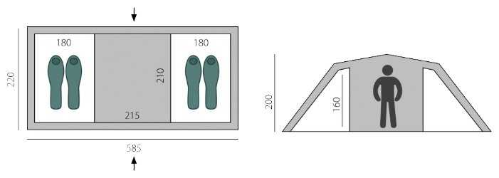 Палатка на два спальных отделения рассчитана на семейный отдых, отдых большой компанией. Высокая, просторная, с тамбуром и несколькими отделениями, оборудована москитными сетками и полом в тамбур. Двухслойная кемпинговая палатка с двумя входами, большим тамбуром- Внешний тент палатки устойчив к ультрафиолетовому излучению. Внешний тент имеет пропитку, задерживающую распространение огня. Входы всех спальных отделений продублированы москитной сеткой. Во внешнем тенте вход в тамбур продублирован москитной сеткой. Тент палатки оборудован юбкой. Всем советую.
