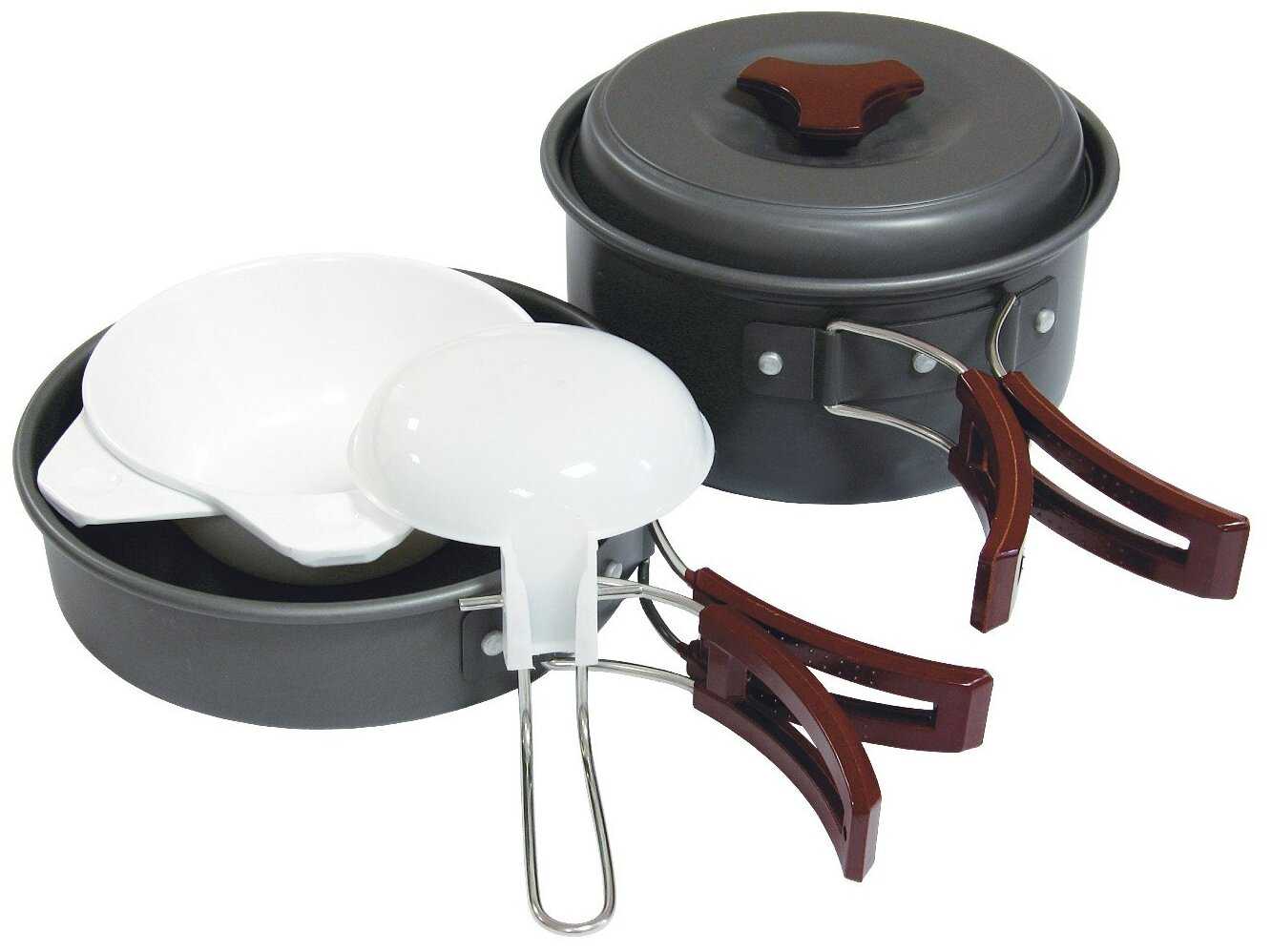 | Состав набора : | котелок, крышка, ложка, половник, сковорода, тарелка |