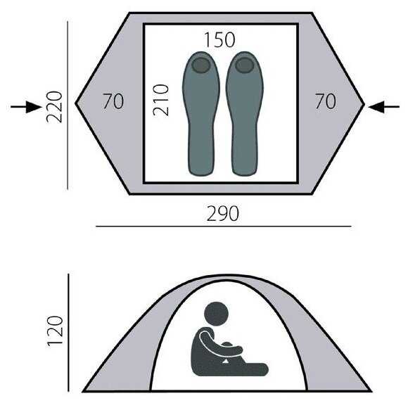 Главной конструктивной особенностью всех вышеперечисленных палаток, и этой, является поперечная консольная короткая дуга, формирующая более объемные и более глубокие тамбуры по 70 см, в отличие от палатки этого же производителя BTrace Ion 2+, у которой дуги, кстати, тоже алюминиевые, но тамбуры без консольной дуги и идут сразу сверху вниз на глубину 50 см и намного меньше по объему.