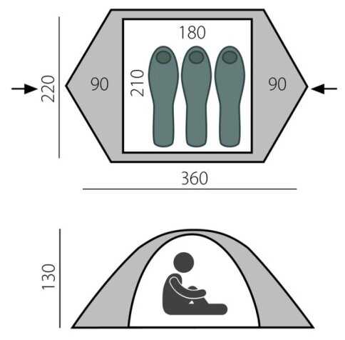 - + Удобная, просторная на 3-х человек, хорошо продумана конструкция - в т.ч. окошки для проветривания с фиксацией высоты открытия окошка в тенте, много карманов в палатке. Считаю, что хорошее соотношение цена -качество.
