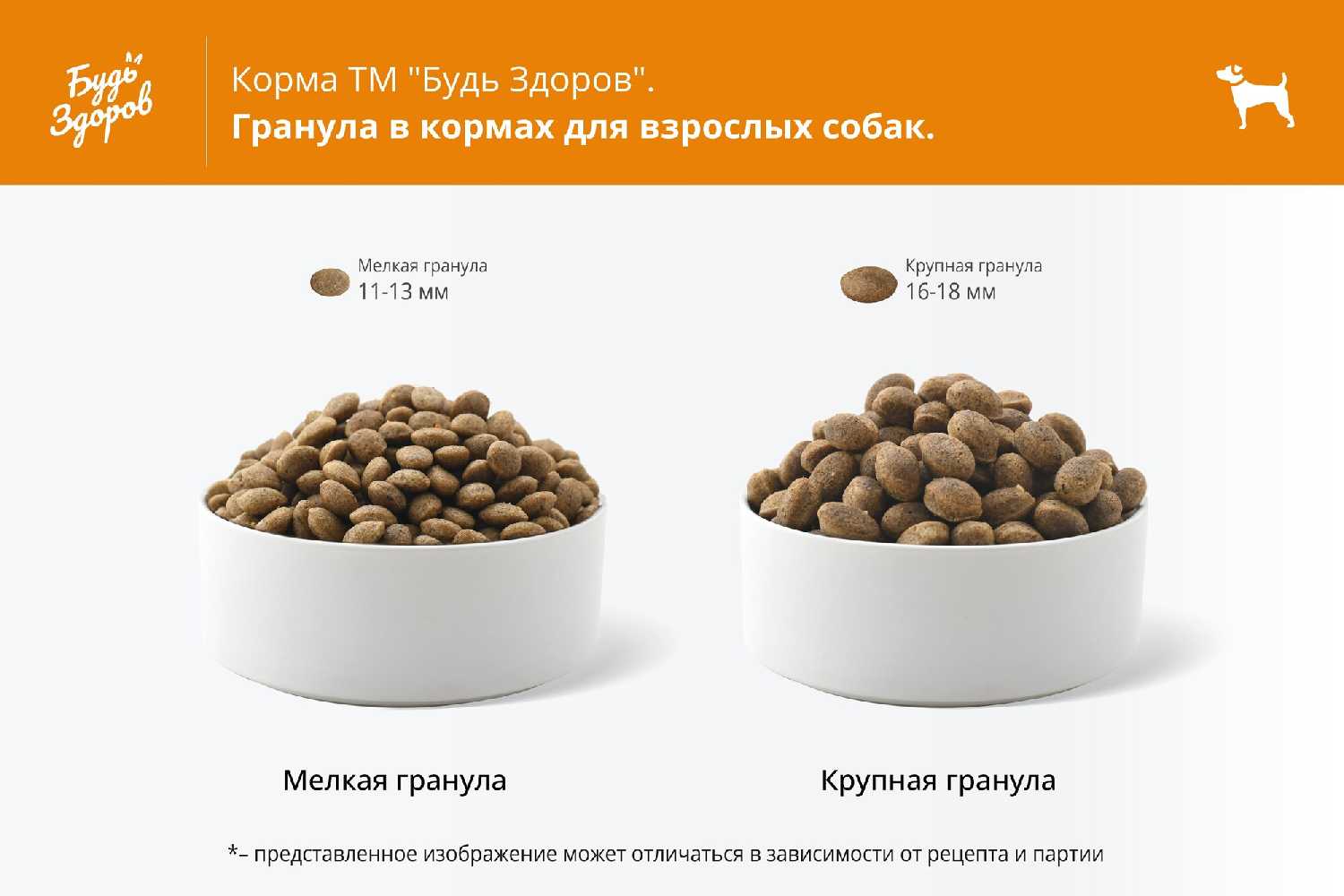 - + Есть 2 формата корма, крупная и мелкая гранула, для любой породы можно подобрать. Состав корма вполне правильный, на первом месте источники качественного животного белка.