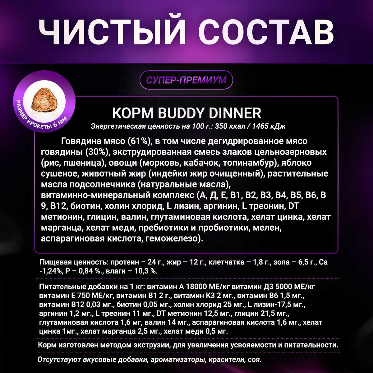 Отзывы о Корм сухой для собак всех пород BUDDY DINNER Премиум класса Gold Line