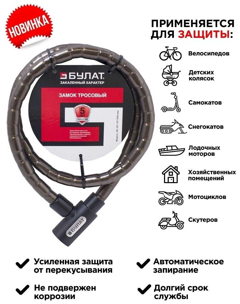 17 отзывов пользователей o БУЛАТ Замок велосипедный со стальным тросом в пластиковом кожухе (ВС 257)