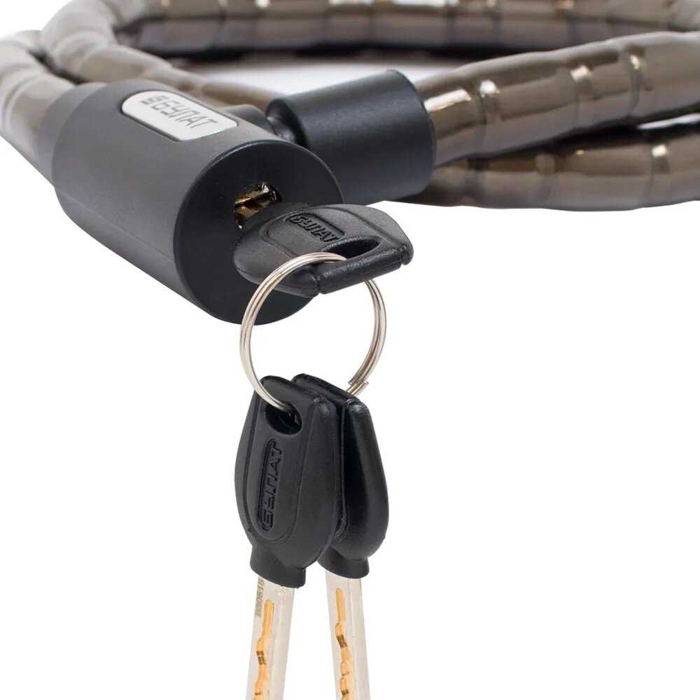 Лучше перестраховаться и взять качественный,как этот Булат трос,с тремя ключами, защёлка от грязи.С ключём всегда быстрее чем в кодовым.Очень приятная пластиковая оплётка.Советую к покупке.