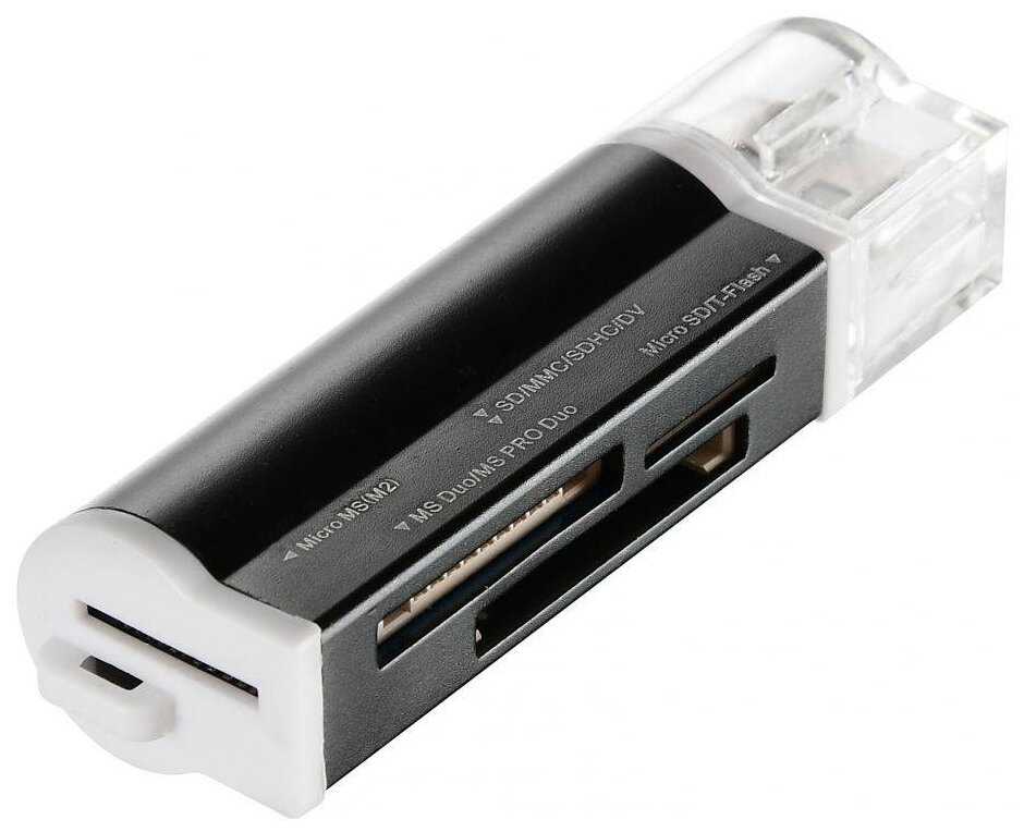 - + Маленький, черный, с тремя портами для карт, пусть и нужен был только один. Хорошо читал SD-карту, никаких нареканий. Нормально работал весь год. Дешевый.