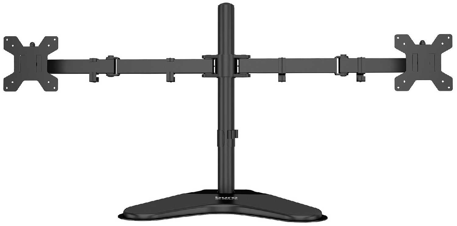 - + Недорогой и качественный. Есть смысл брать если нет возможности крепить к столешнице, но нужны два монитора на одной подставке. Поворачиваются и наклоняются что удобно.
