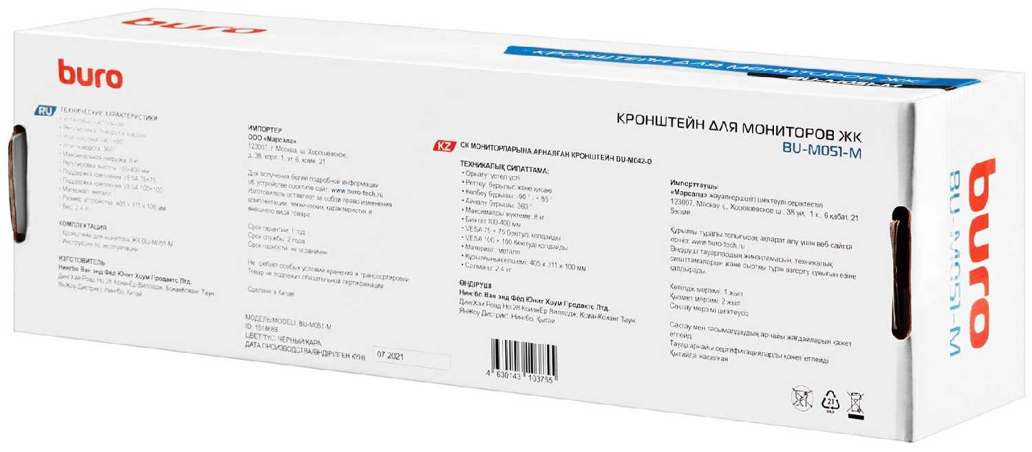 | Комплектация : | Кронштейн для мониторов ЖК Buro Инструкция по эксплуатации |