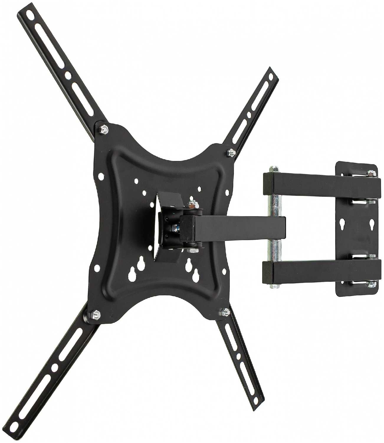 - + Прочная металлическая конструкция. Кронштейн поворачивается, выдвигается и наклоняется. Выдерживает до 15 кг веса.