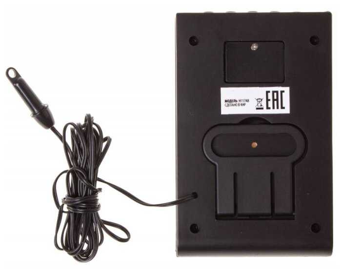 H117AB. Этому изделию цена рублей 200 , тогда вопросов нет. Но, на улице 21. Показывает 25-26. Влажность вероятно тоже с такой погрешностью... Часы спешат, подсветки дисплея нет. На стену не установить, нет крепления... Просто деньги на ветер. Не рекомендую к покупке. Моя оценка 2.5 из 5.