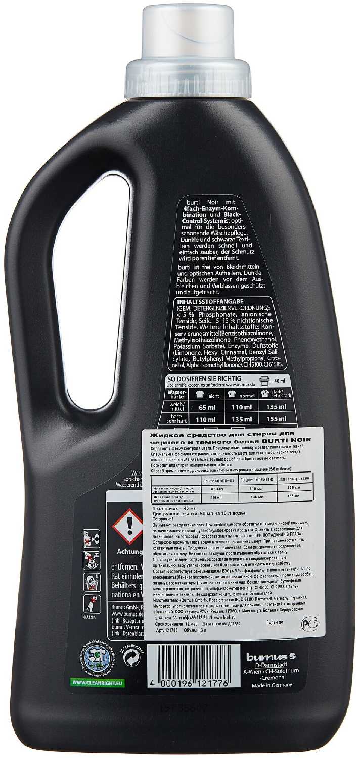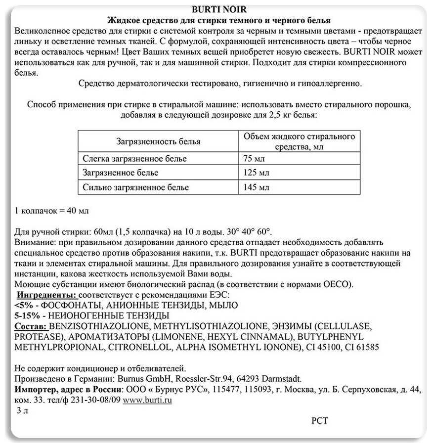 - + Использую Burti Liquid для тонкого белья много лет. Стираю компрессионный трикотаж и тонкое белье, иногда спортивную одежду. Приятный ненавязчивый аромат, щадящий для цвета тканей. Отличный также для ручной стирки.