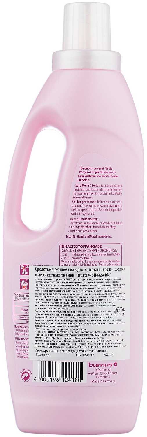 Долго не писала отзыв,проверяла многократными стирками разных изделий. Теперь могу с чистой совестью сказать,что гель замечательный. Стирала тончайшие шелковые платки,дорогие кашемировые вещи,свитера из мериноса. Все вещи в идеальном состоянии. Цвет не вымывается. Ворс расправляется. Нет никакой деформации изделий. Запах приятный и ненавязчивый. Рекомендую!