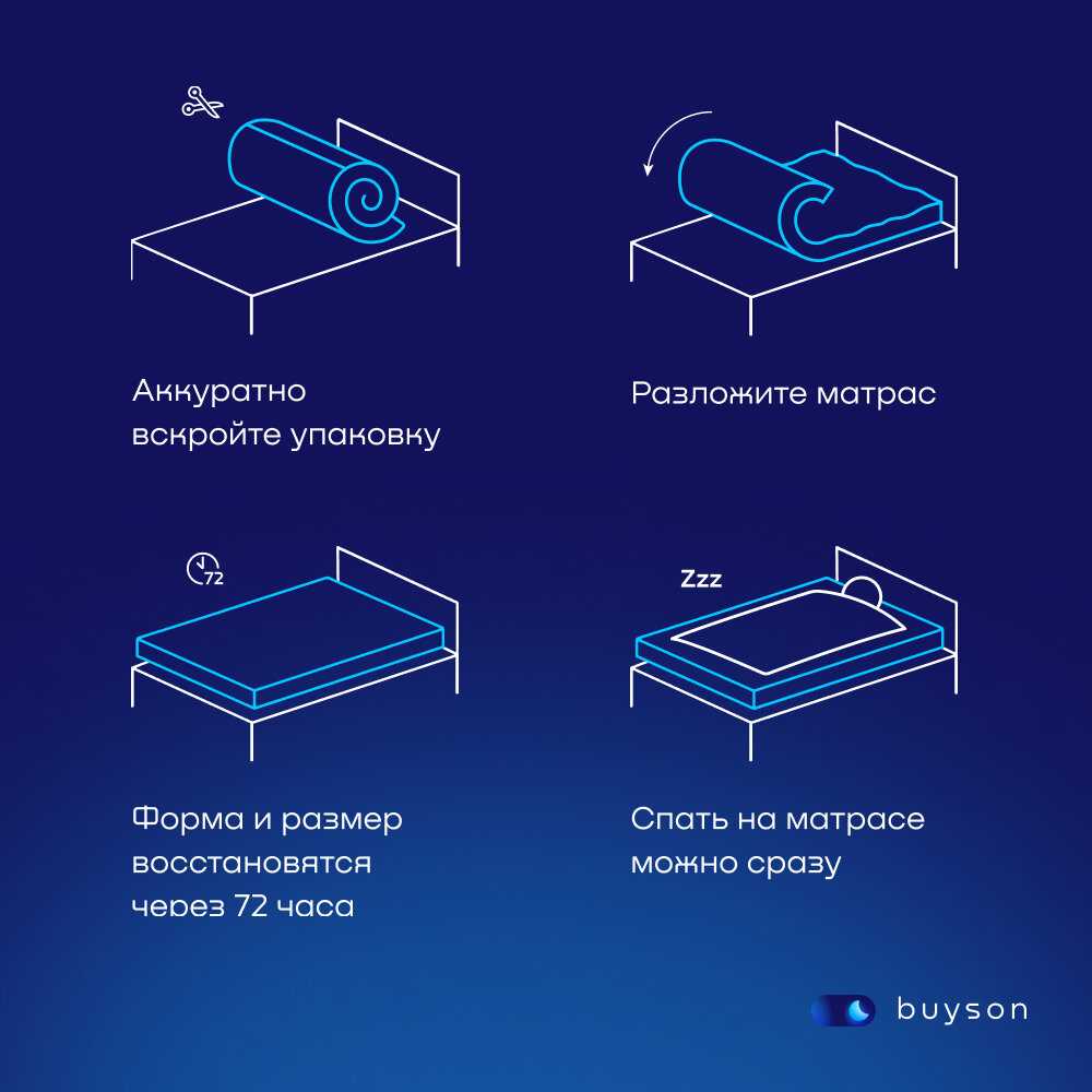 Отличительная техническая особенность продукта – поставка в скрученном виде в вакуумной упаковке. Пользователи подтверждают удобство транспортировки в таком виде. Важное уточнение из опыта: матрас полностью восстанавливает форму за рекордно короткие сроки – от 2-3 часов до 2.5 дней, что значительно быстрее многих аналогов на рынке. Уже через 3 часа на нём можно спать, что является серьёзным преимуществом. Однако несколько отзывов упоминают лёгкий химический запах после распаковки, характерный для новых изделий, но отмечают, что он "быстро выветривается".