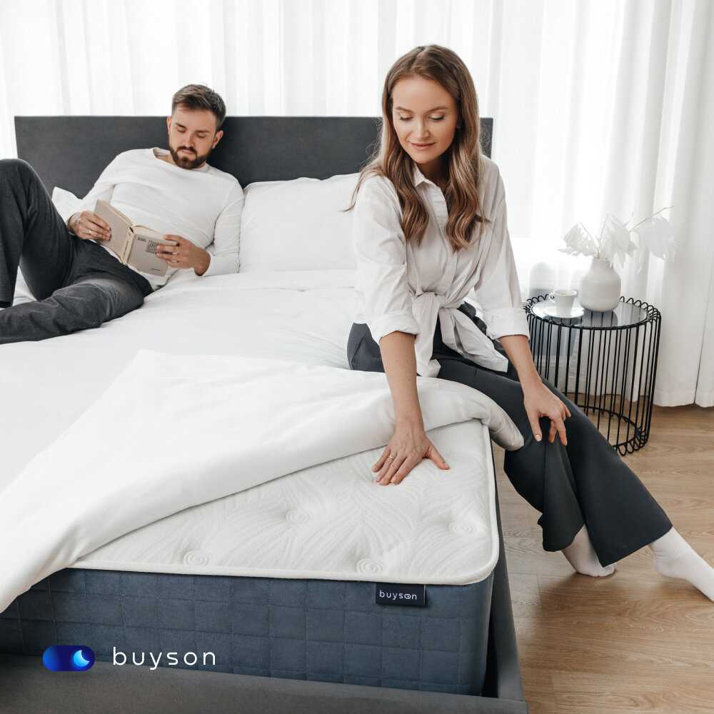- Зональные пружины типа Pocket Spring адаптируются под разный вес партнеров (50 кг и 87 кг) без образования "волны".