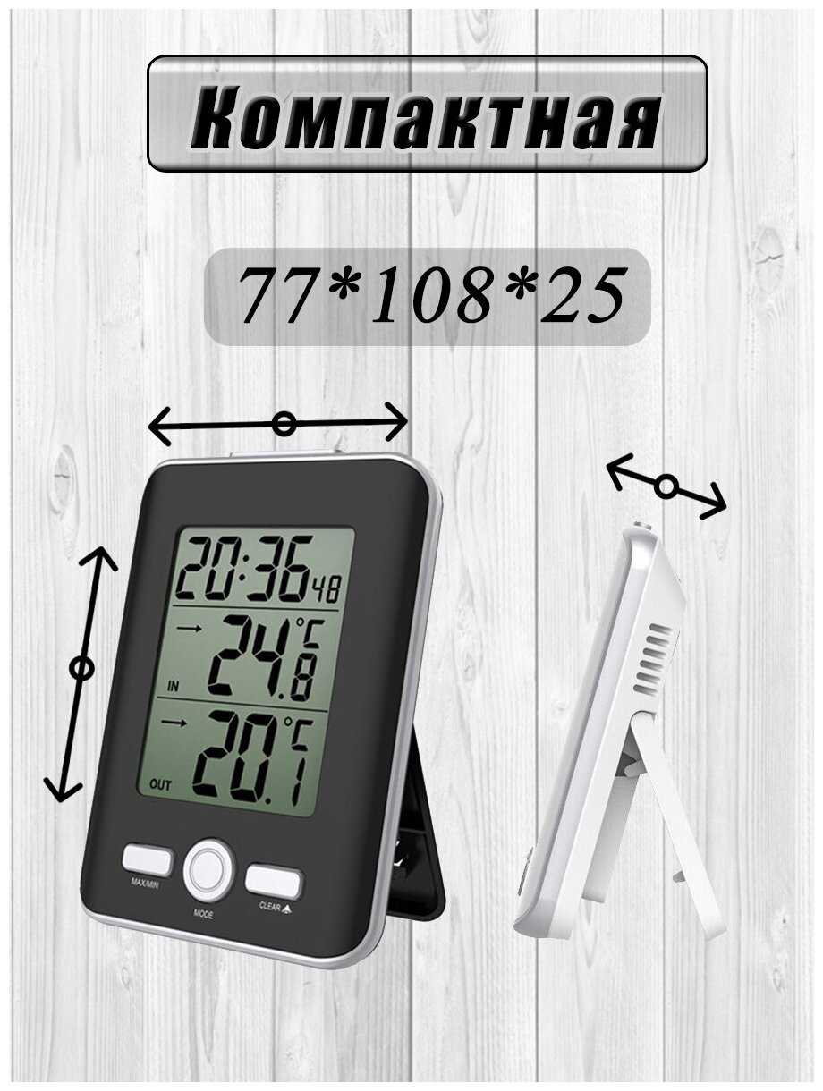 - + Моя удачная покупочка в начале сезона! Внешняя и комнатная температура и часы (умилительно и секунды выведены на табло). Достаточно длинный провод с сенсором (выкинула за окошко, сенсор свешивается с подоконника). Термометр сделан из очень хорошего пластика (в руки прям приятно брать). Два вида установки - на стенку и можно установить на стол. Удобная установка времени, даже будильник есть
