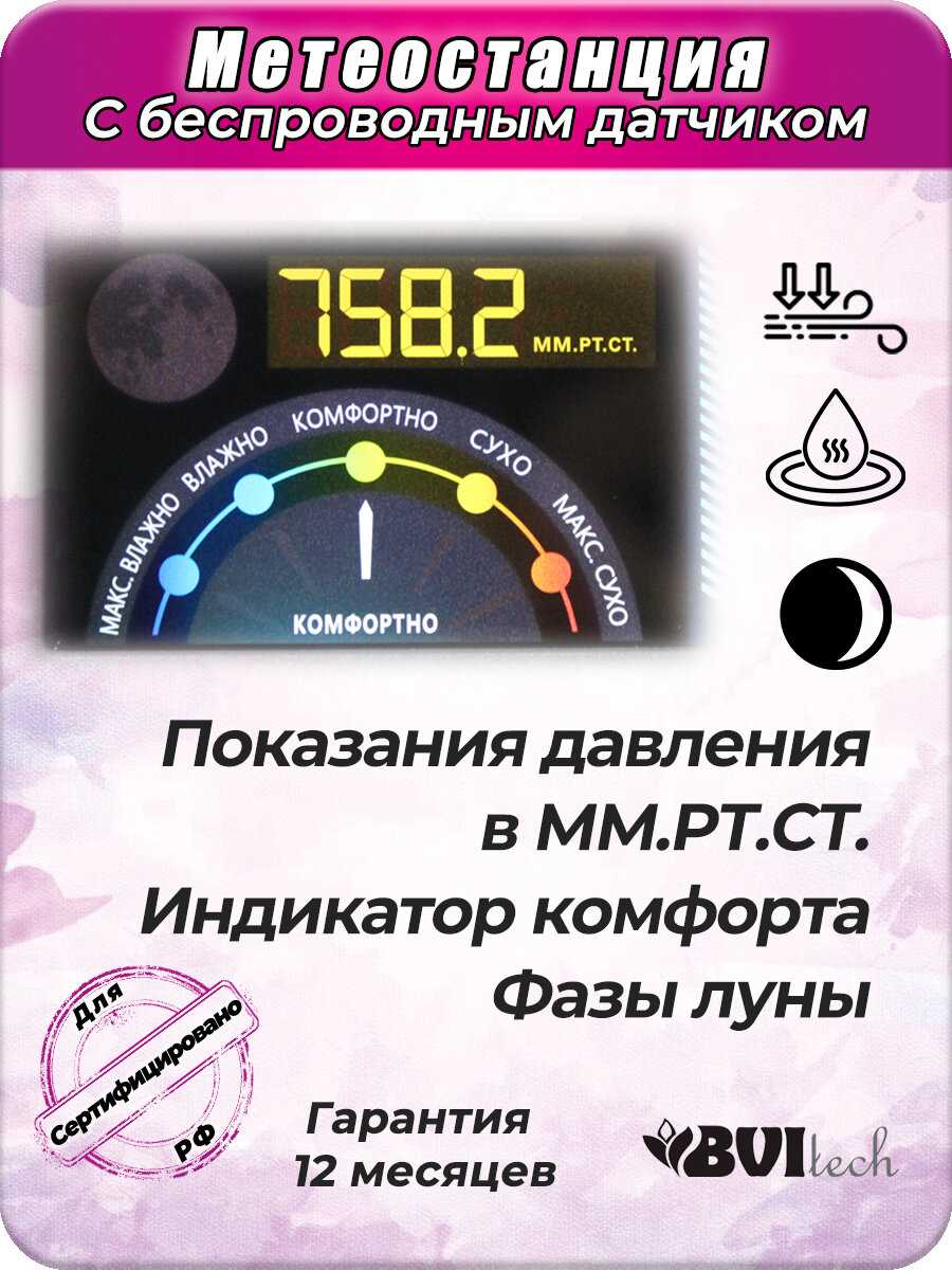 70 отзывов пользователей o BVItech Метеостанция с беспроводным датчиком (BV-677)