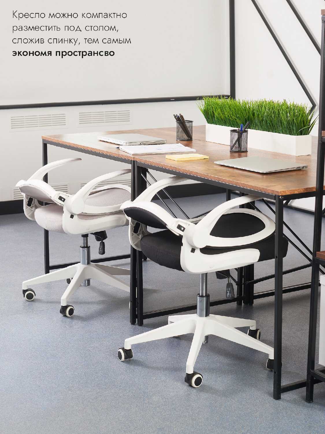 Ключевой особенностью и самым часто упоминаемым преимуществом является складная спинка. Эта функция позволяет сложить кресло и полностью задвинуть его под стол, что критически важно для экономии пространства в небольших комнатах или домашних офисах. Именно компактность хранения и способность "исчезать" после работы выделяет эту модель среди многих других. -