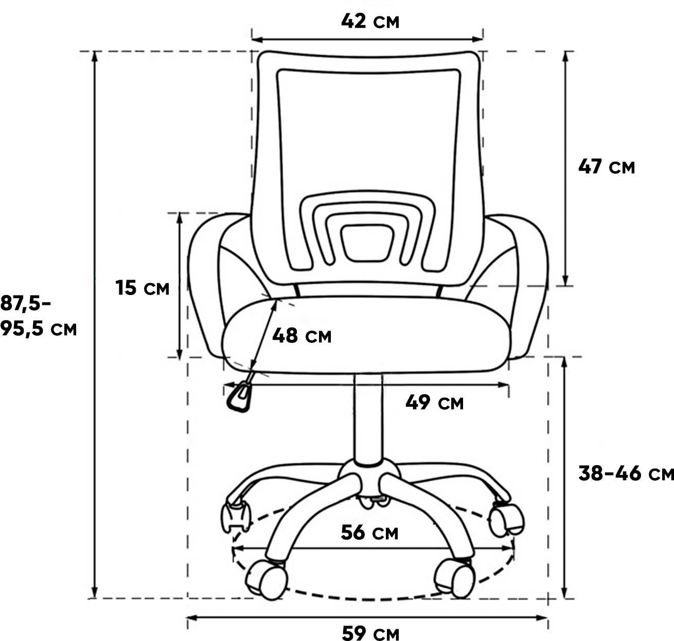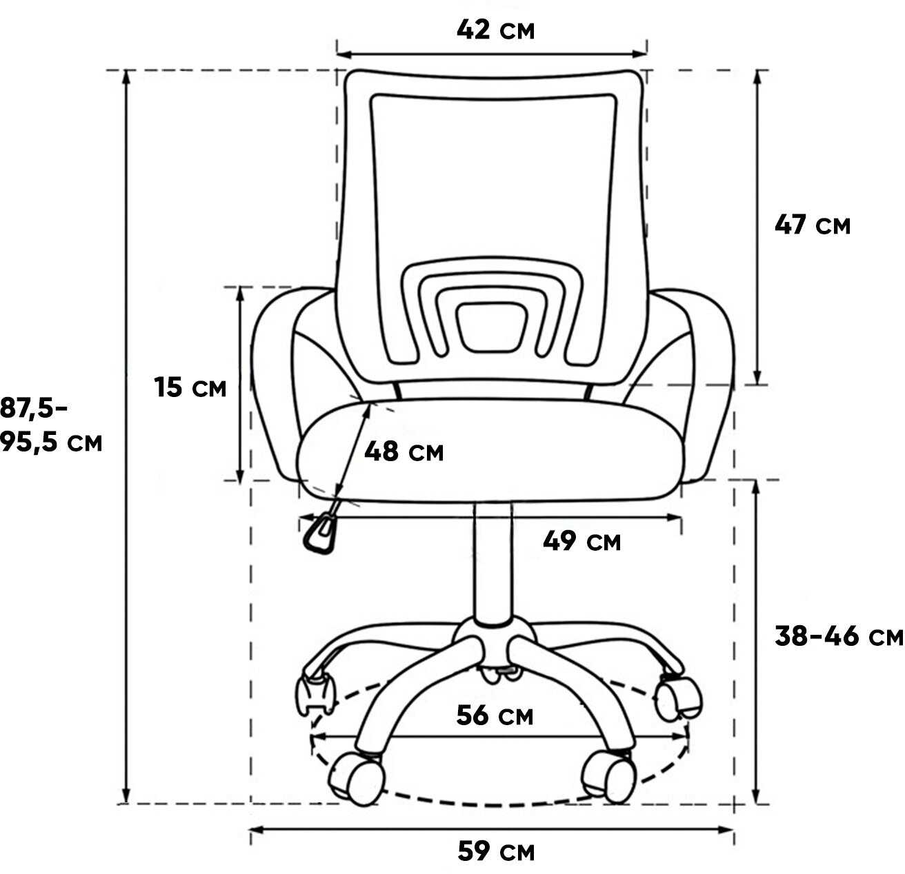 - Ширина основания — 63 см, радиус вращения — 72 см, что на 15% меньше стандартных офисных моделей.