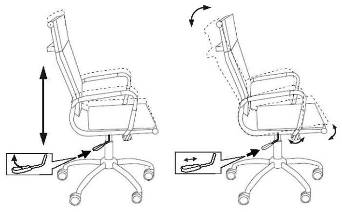 - регулировка наклона спинки фиксация спинки в любом положении регулировка высоты сиденья: «газлифт» Ширина сиденья: 51.5 см Глубина сиденья: от 48 до 47.50 см
