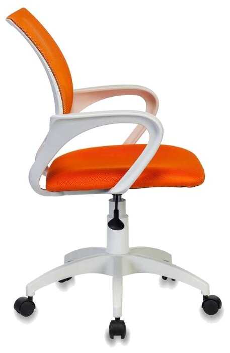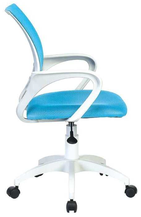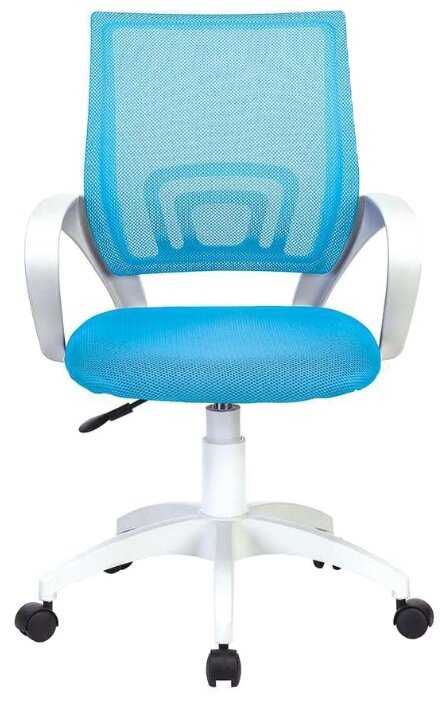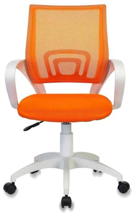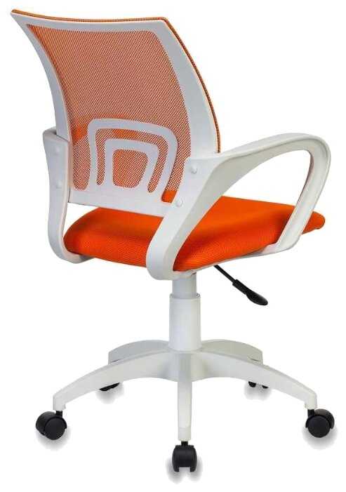 - Белый пластик и цветная обивка выглядят презентабельно, не как типичный офисный стул.