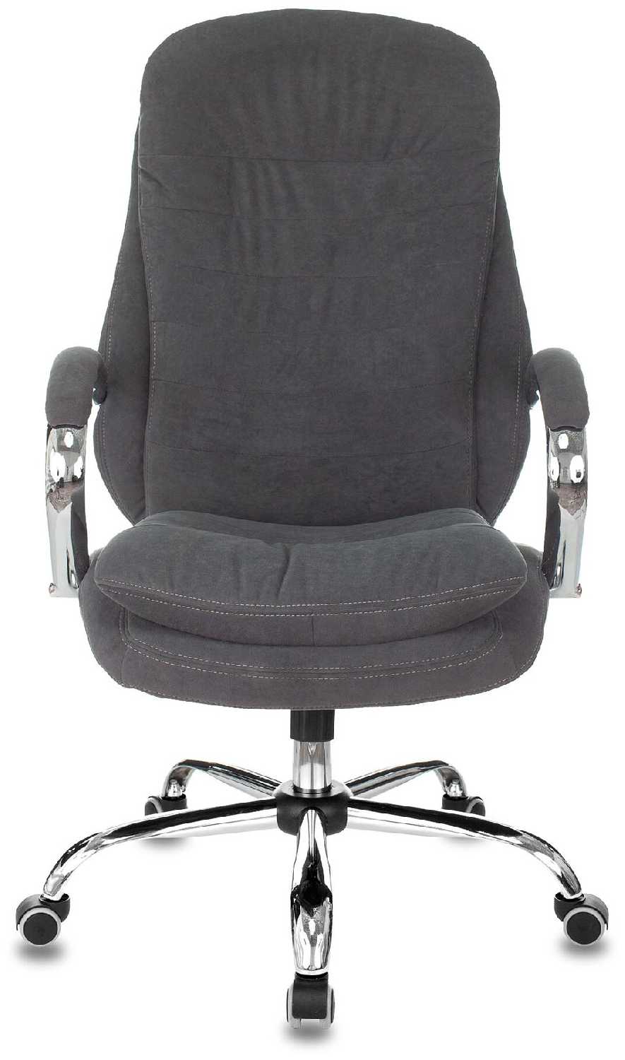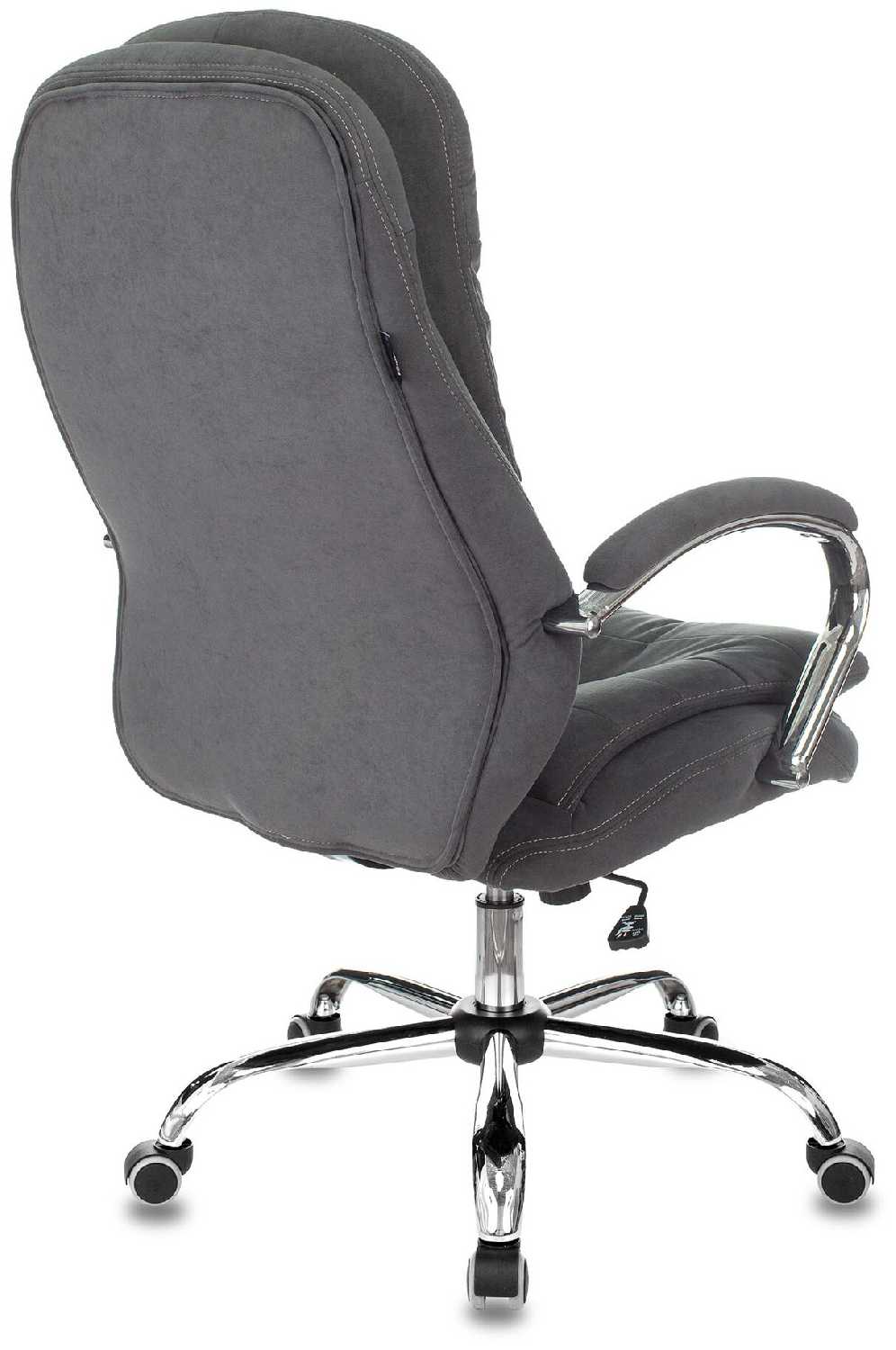 - Металлические подлокотники с хромированным покрытием устойчивы к царапинам, а прорезиненные колеса диаметром 6 см не оставляют следов на полу.