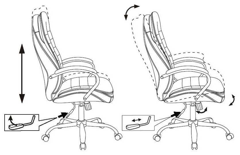 - Отсутствие фиксации спинки в промежуточных положениях — только режимы "строго вертикально" и "свободное качание".