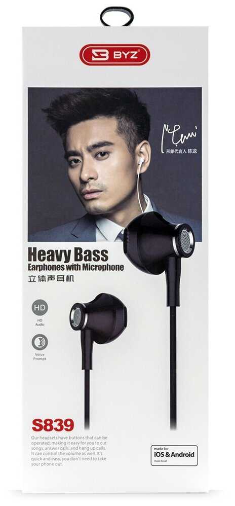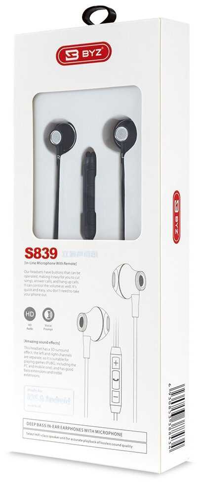 Отзывы о Наушники проводные BYZ S839 вкладыши с микрофоном, 1,2 метра, черный