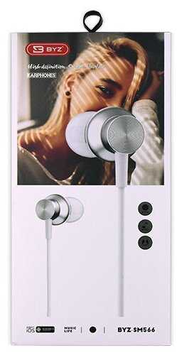 Отзывы о Наушники проводные BYZ SM566 вакуумные с микрофоном, 1,2 метра, серебро